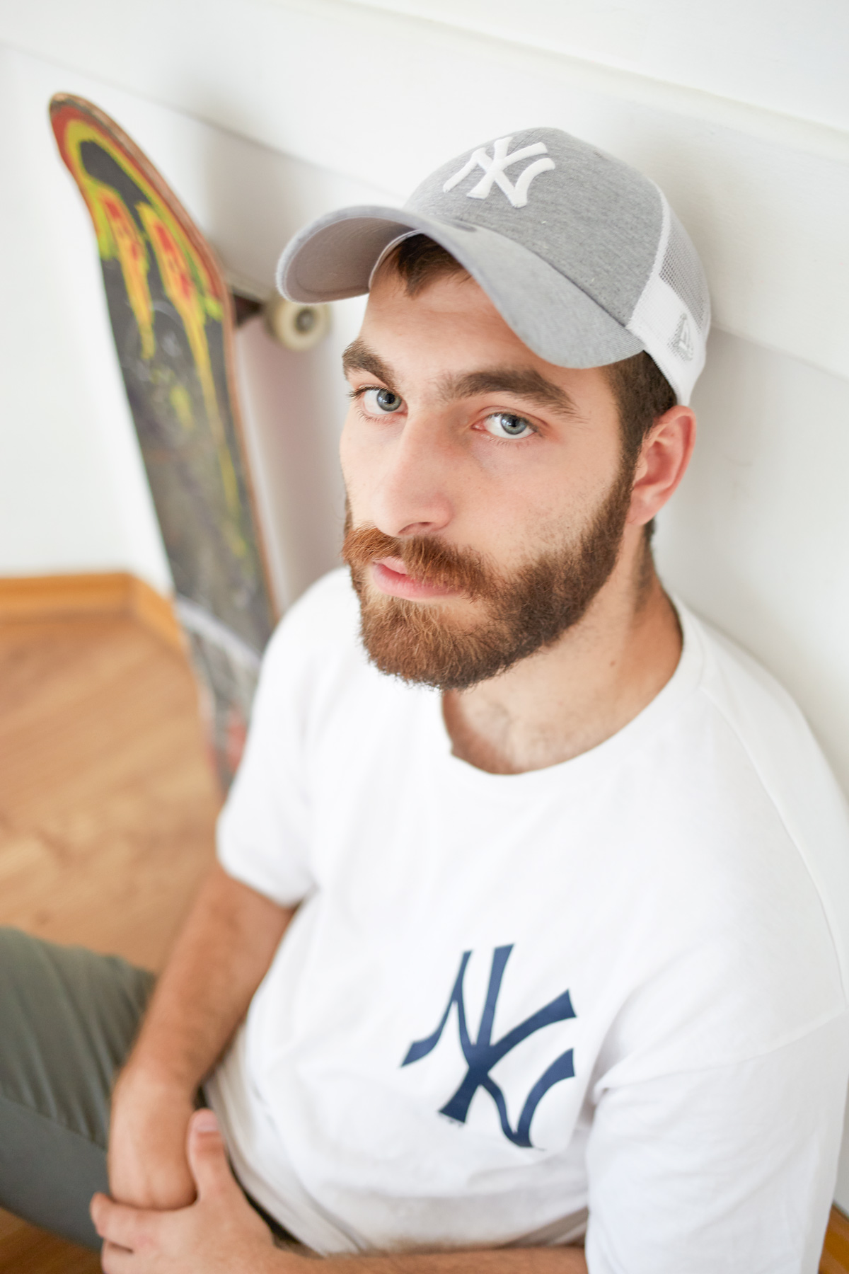 «Με αφορμή το καπέλο Los Angeles Dodgers της New Era, έμπνευση μου για το συγκεκριμένο project είναι το αστικό τοπίο της Αθήνας. Αυτό που μου τραβάει πάντα το ενδιαφέρον είναι η ποικιλομορφία της αρχιτεκτονικής αλλά και η πολυπλοκότητα της δομής της. Προσπάθησα να αναδείξω πίσω από την φιγούρα του μοντέλου, την επανάληψη των αρχιτεκτονικών στοιχείων, τη γεωμετρία των μορφών και τους άξονες. Με τη λέξη urban, αυτό που μου έρχεται στο μυαλό είναι η γοητεία της πόλης, οι πολλές επιλογές, τα χρωματιστά φώτα, τα αμέτρητα σοκάκια αλλά και οι γρήγοροι και οι έντονοι ρυθμοί».