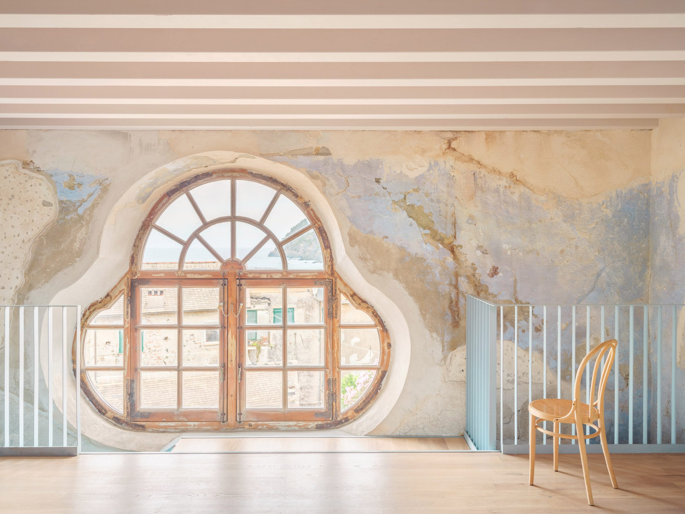 Στο ιερό και την αψίδα, το στούντιο αποκατέστησε τις τοιχογραφίες και τα στούκο, αφαιρώντας τις αλλοιώσεις του χρόνου, ενώ επέλεξε να αφήσει ορατά τα ίχνη των παρεμβάσεων του 20ού αιώνα. “Σε αυτό το τμήμα του κτιρίου θελήσαμε να αφήσουμε εκτεθειμένη την ιστορία των γεγονότων του 20ού αιώνα”, εξηγεί η Caarpa. “Συντηρήσαμε τις παστέλ αποχρώσεις, τα σκεπασμένα ίχνη και τα ελλείποντα τμήματα των τοίχων ως μια ανεπίσημη έκφραση της πρόσφατης ιστορίας του κτιρίου. Δημιουργήσαμε μια αντίθεση ανάμεσα στα δύο μέρη της εκκλησίας, ώστε να περιγράψουμε ολόκληρη την ιστορία της”.